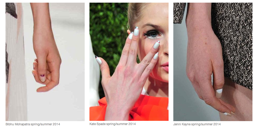 Complementing the apparel colour palette of spring/summer 14 in New York white polish was the colour of the season seen mostly on short nails.